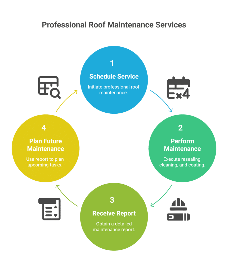 When you schedule professional roof maintenance, you are paying for a complete service package intended to keep your roof in a fine state. For RVs, the services generally include resealing seams, cleaning, leak detection, and application of protective coatings. Another key feature of a professional roof maintenance operation is a detailed report you get afterward. This covers what the condition of your roof was, what was done, and what is recommended for future maintenance. Having this report on hand will help you to keep track of roof history and prepare for its long-term maintenance.